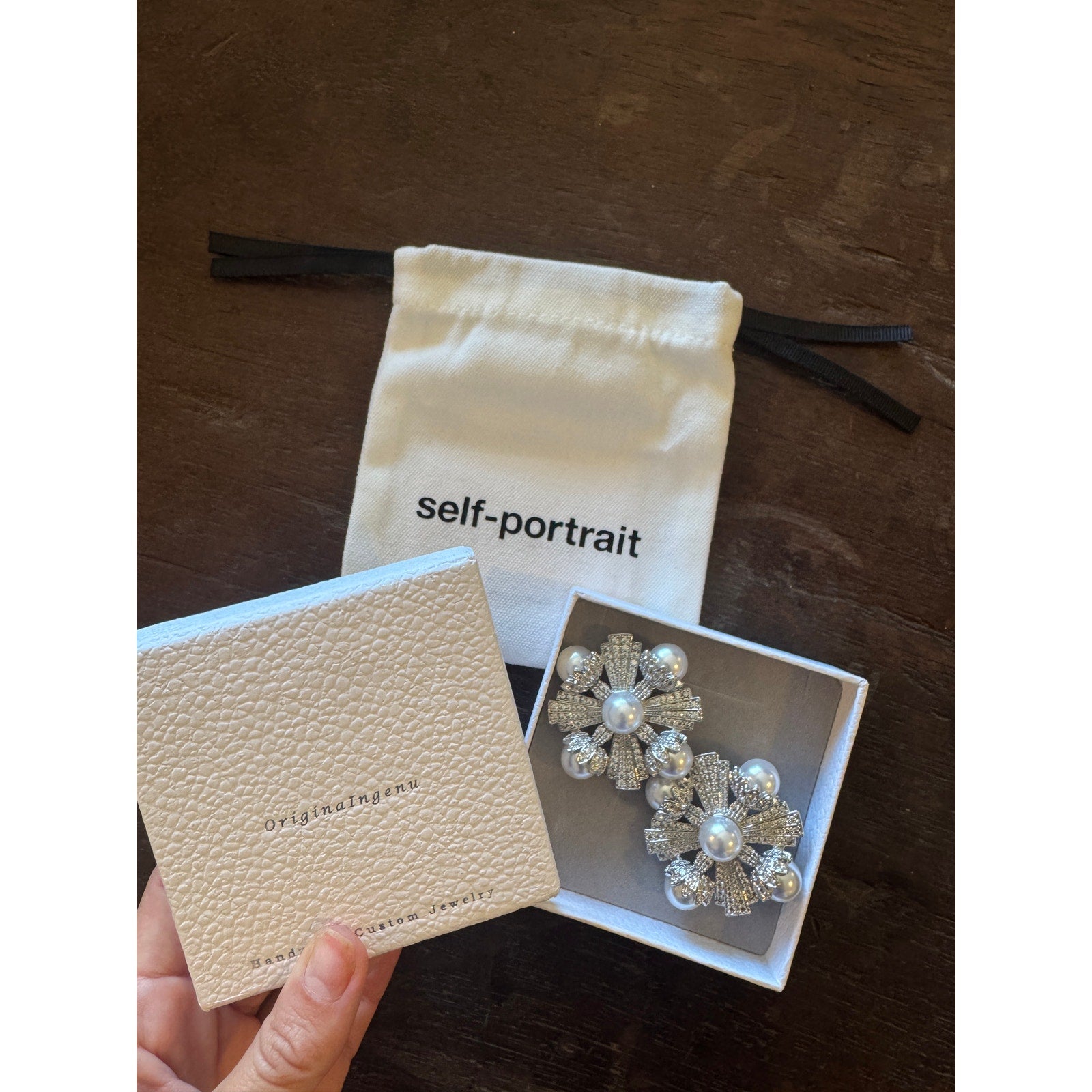 Make a dramatic entrance with these ornate crystal and pearl encrusted earrings. Their bold, oversized silhouette paired with dazzling embellishment makes them the ultimate statement accessory for evening events and glamorous soirées.