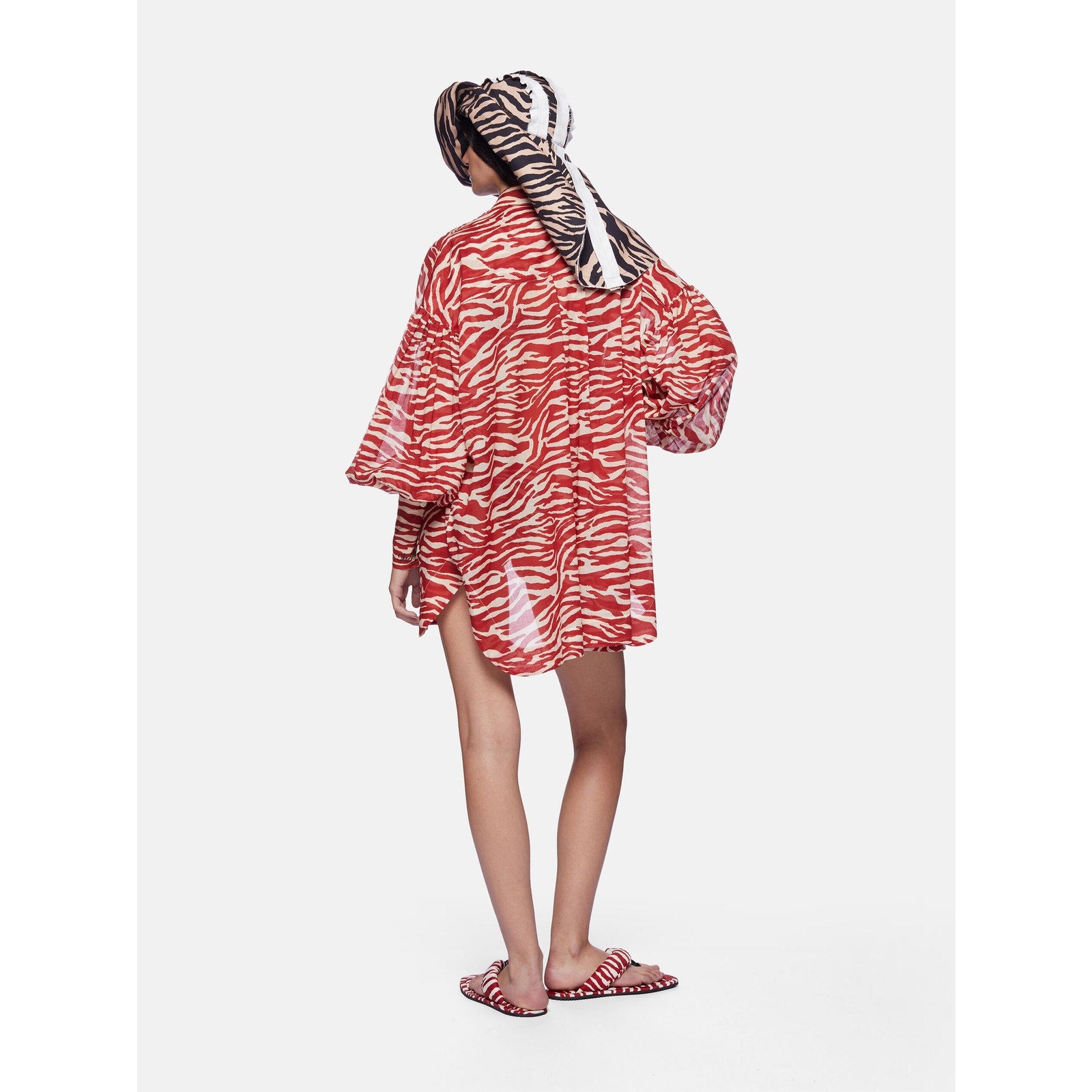 - Red-and-milk zebra-print cotton mousseline
