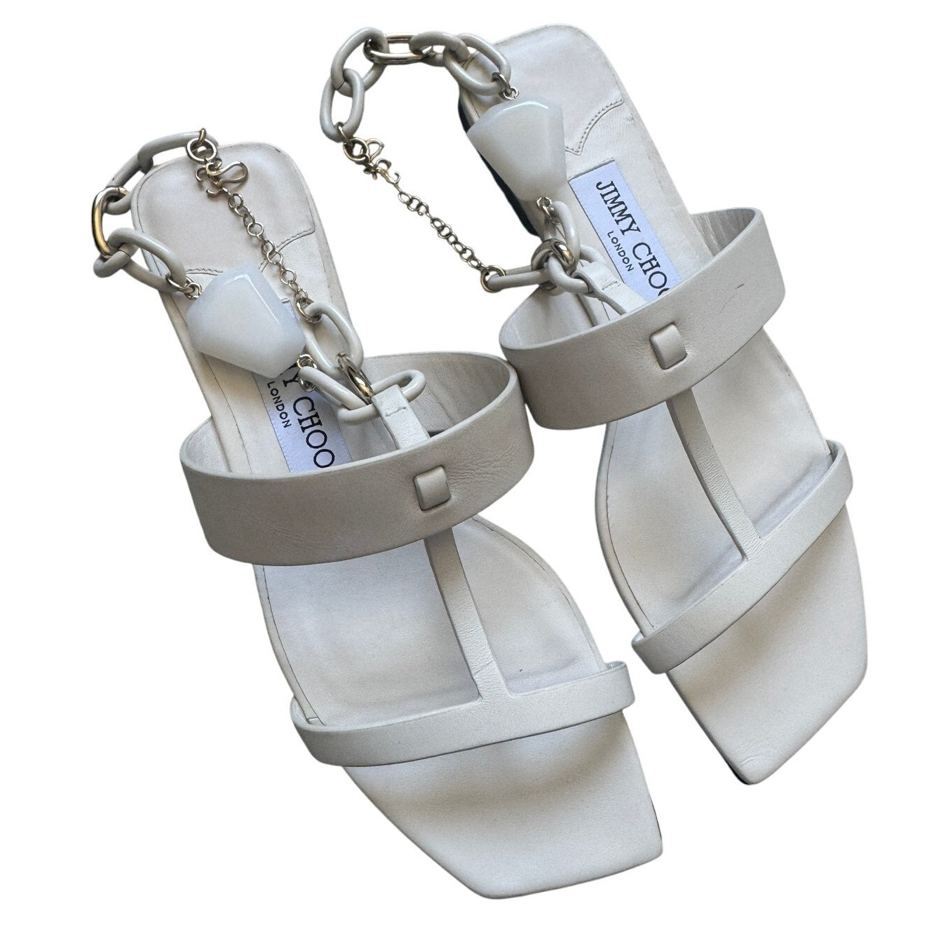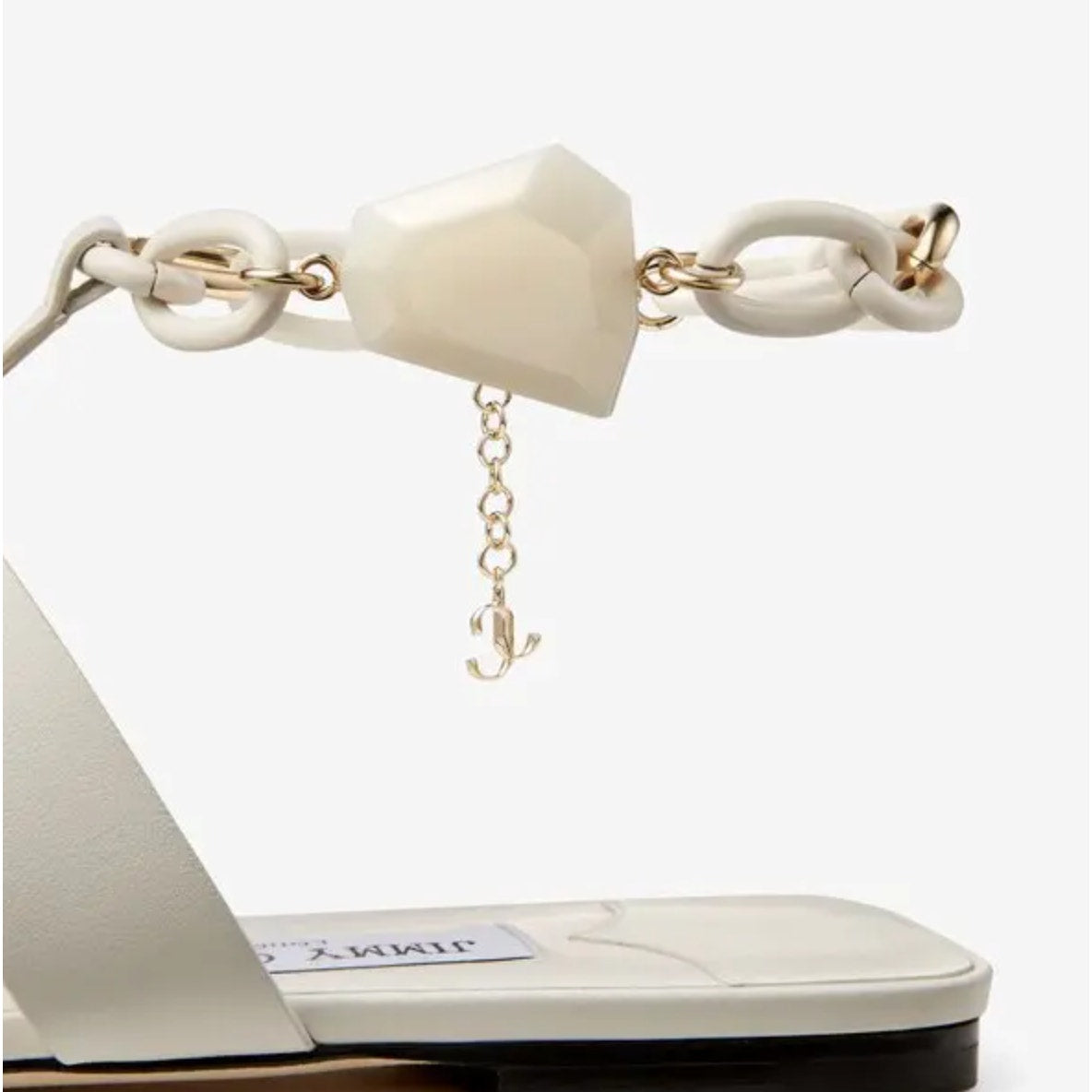 Striking and sophisticated, the Jimmy Choo Reed flats are crafted from luxe latte calf leather and detailed with a jewelled chain anklet featuring an African jade stone. Designed to harmonize and stabilize, this stone adds a meaningful touch to these versatile statement flats. Perfect for elevating daytime looks or complementing evening ensembles, they’re a chic wear-anywhere option.