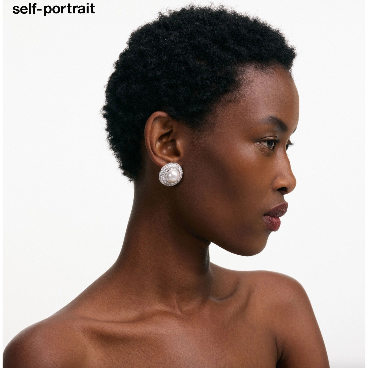 Self-Portrait Small Crystal Pearl Earrings