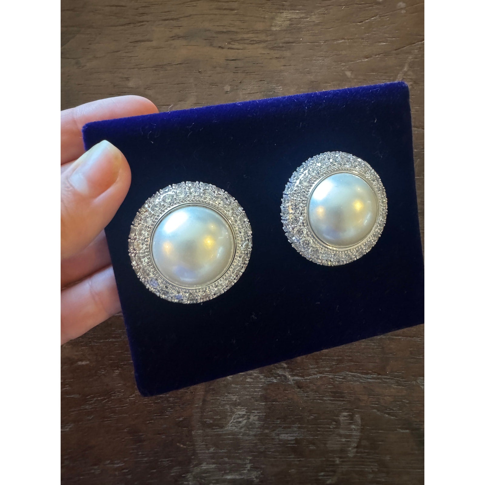 Vintage-inspired yet modern, these stud earrings feature luminous faux pearls framed with sparkling crystals. Perfect for adding a touch of glamour to everyday or evening looks.